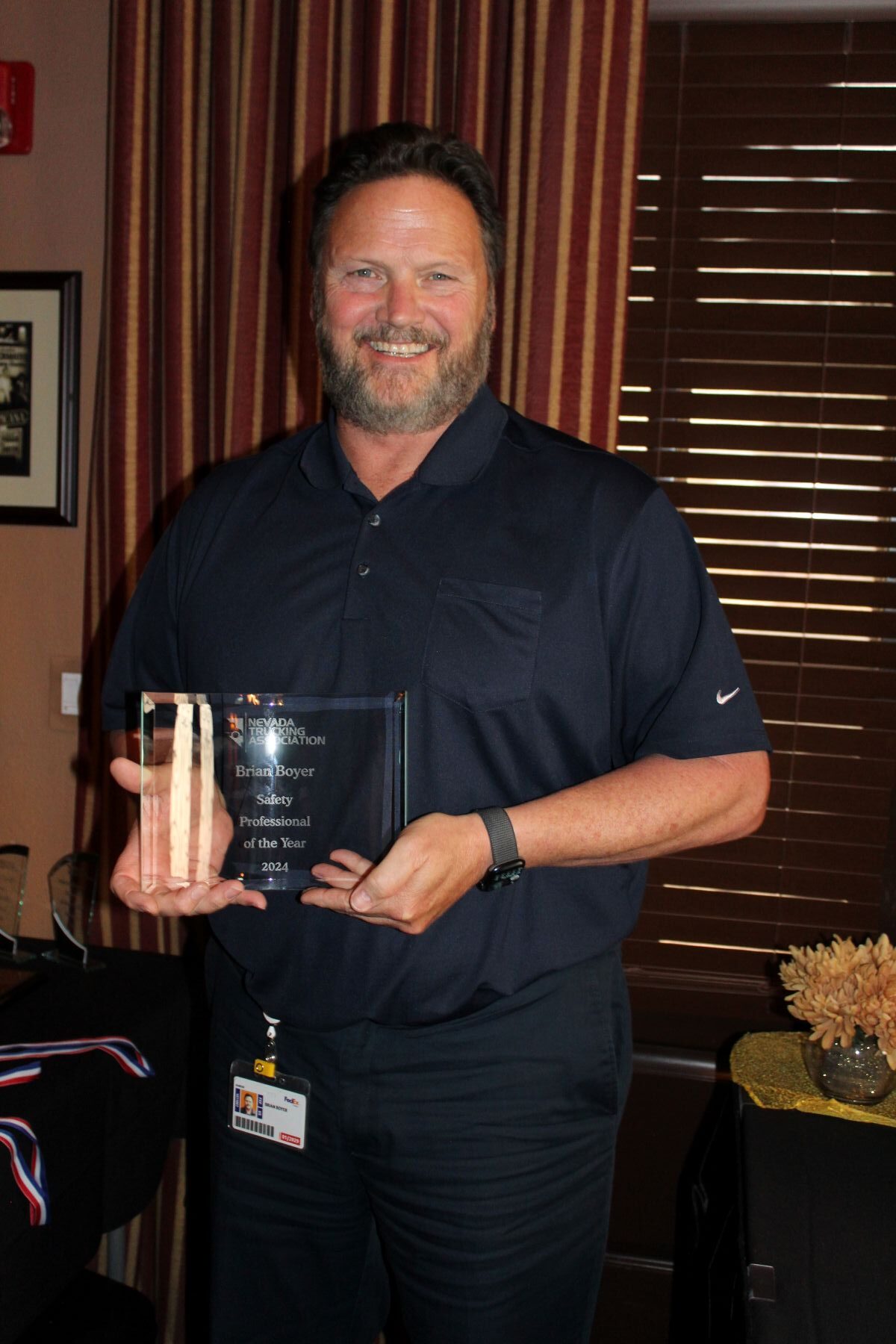 Boyer is also the Nevada Trucking Association’s Safety Professional of the Year, nominated by his employer, and honored earlier this year at the annual Safety Award Luncheon. He’s charged with safety oversight in five western states with 11 FedEx service centers and 7 maintenance facilities. He currently boasts the safest district in the company. As he travels his district, Boyer says he meets with small groups to hear their ideas for safety improvements.